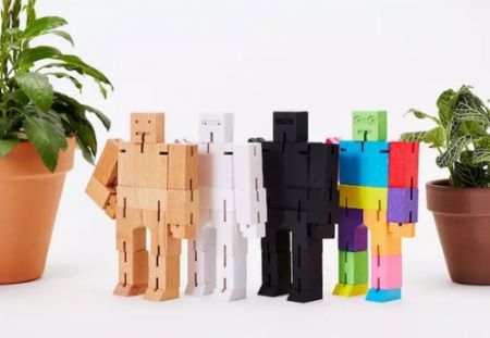 这个名叫 Cubebot 的积木玩具是美国设计师 David Weeks 为创意品牌 Areaware 打造的--这个品牌来自纽约,我们此前介绍过的小鱼刀也由它出品(刚好也有绿色款)。Weeks 在设计时借鉴了日本的神道积木(Shinto Kumiki)智力玩具,通过在木块间加入松紧带的方式,这些积木既可以拼出机器人的造型,也能变回立方体的形状。这是绿色版的购买链接,有两种大小,售价分别为 9 和 18 美元。