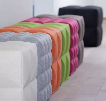 这款正方体的厚座椅 BuzziCube 3D 是比利时家具设计公司 BuzziSpace 的产品,属于旗下的吸音线--在普通产品线之外,这家公司还专门研发了一系列由吸音材质制作的家具,我们之前就曾介绍过它的一款屏风。座椅的表面有几何形的凹凸,无论是单个还是一组放置都非常抢眼。在织物的选项中,'淡黄绿'(Pistache)是最接近'草木绿'的选择。这是它的购买链接,售价从 637 美元起。